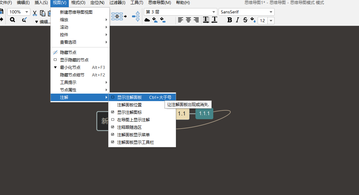另外常用的节点笔记也有, 在这个软件中叫做注释, 直接按照下图就可以打开面板