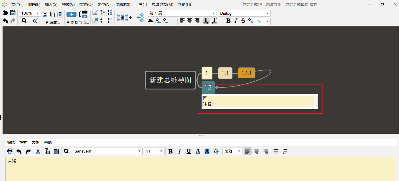 打开后你就可以选中节点进行添加笔记