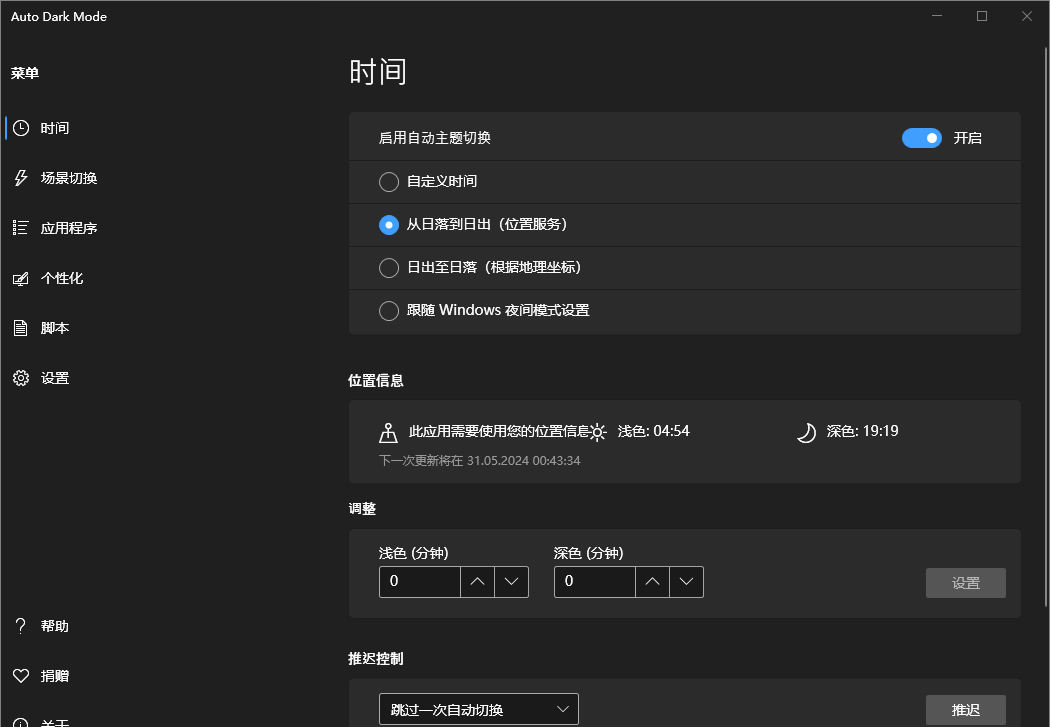 分享一款Win10 Win11自动切换深色模式黑暗模式软件Windows-Auto-Night-Mode