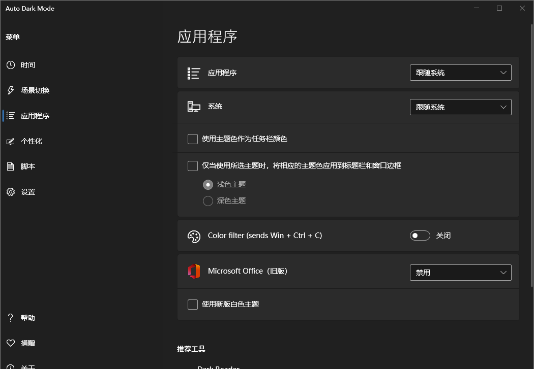 支持对特定程序的深色模式进行定制