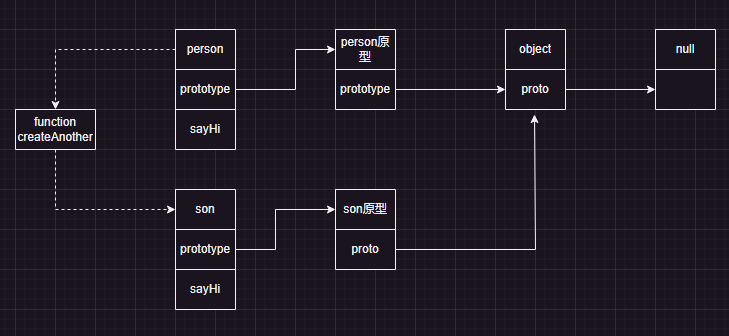 - 图示, 子对象与父对象之间没有任何原型链上的关系